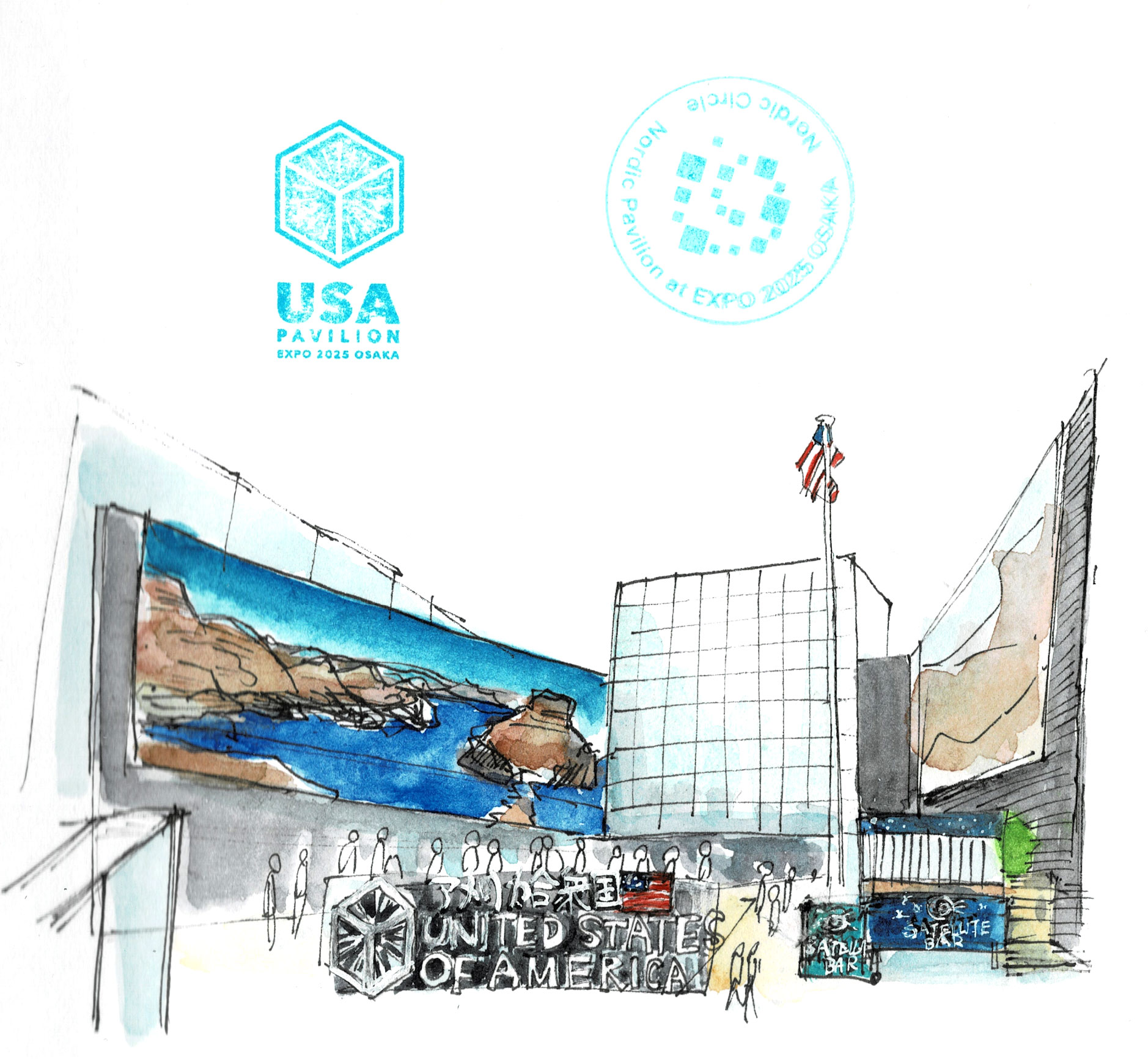 2025年9月30日水彩イラスト, 大阪関西万博
