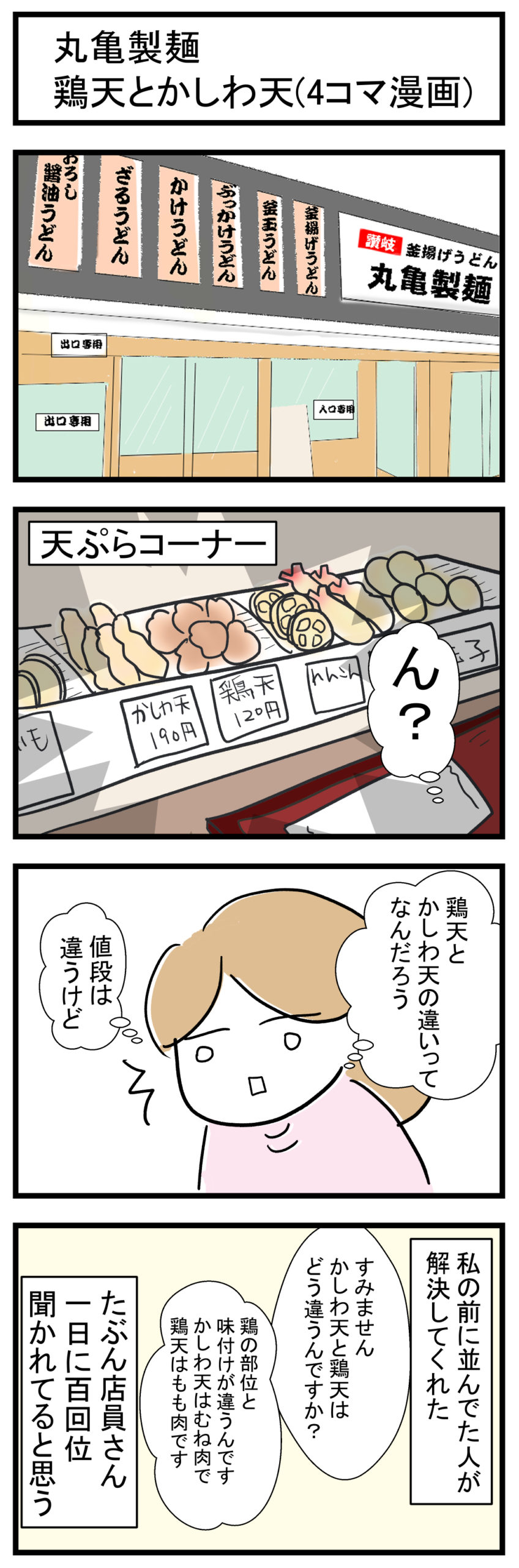 丸亀製麺 鶏天とかしわ天(4コマ漫画)