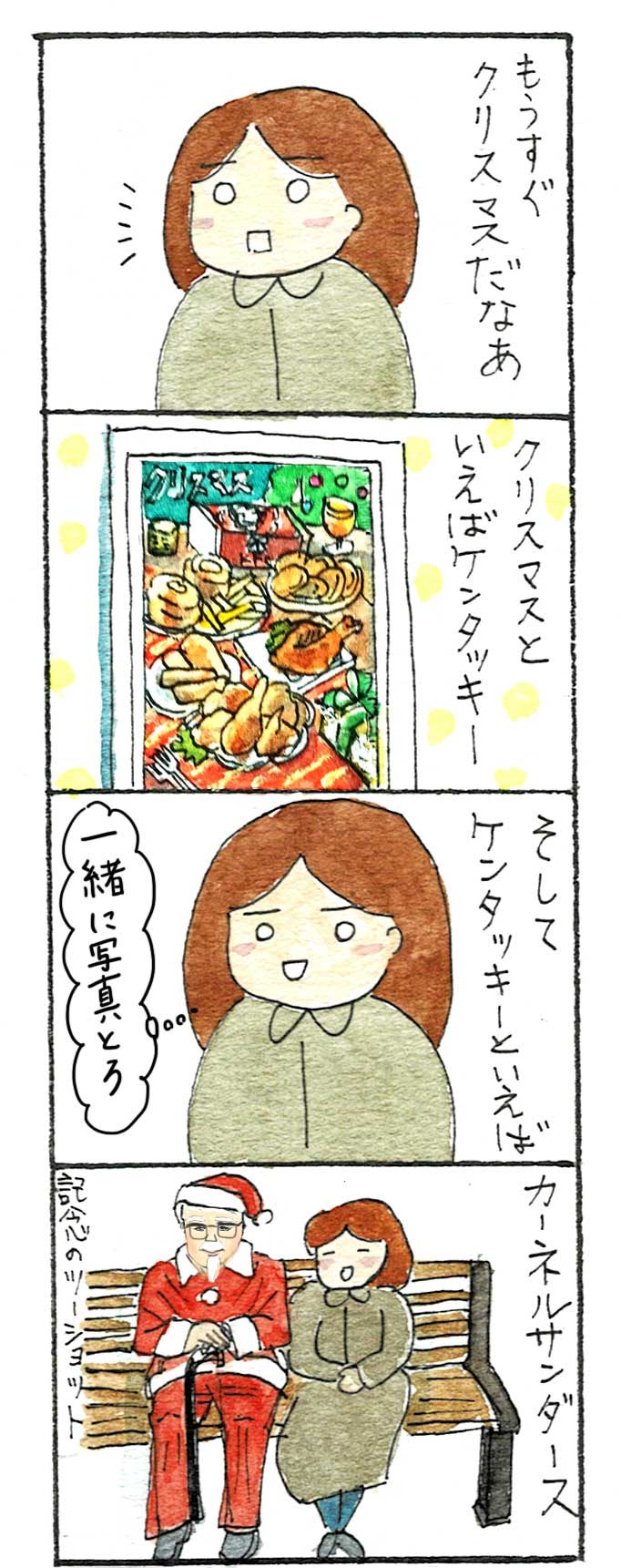 クリスマスのフォトスポット(透明水彩4コマ漫画)