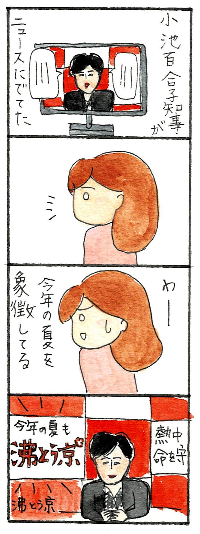 小池百合子 東京都知事(透明水彩4コマ漫画)