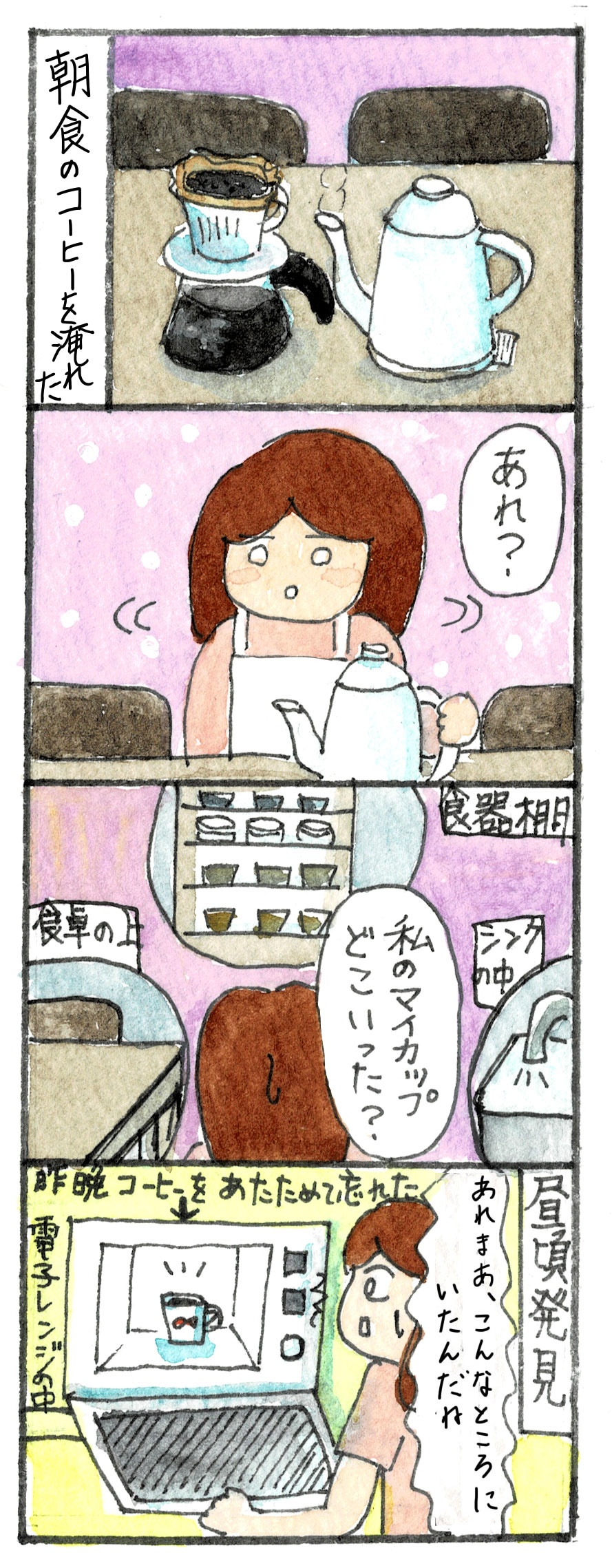 私のマイカップどこいった?(透明水彩4コマ漫画)