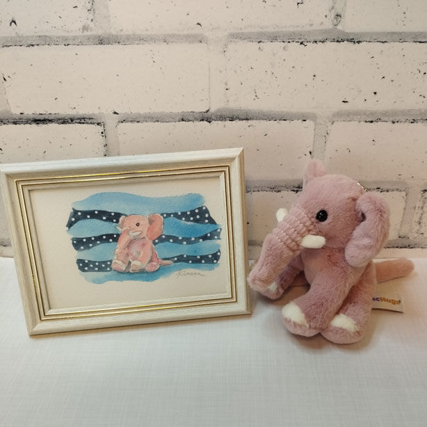 水玉リボンとピンクのぞうさん(透明水彩イラスト)