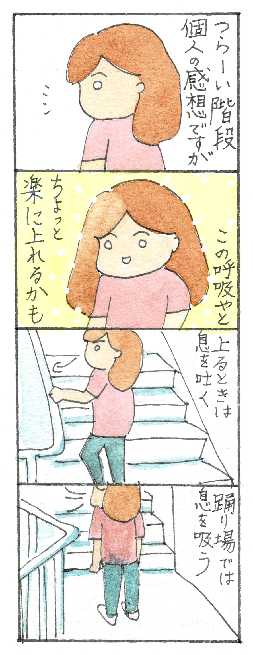 階段瞑想 階段を楽に上がるには(透明水彩4コマ漫画)