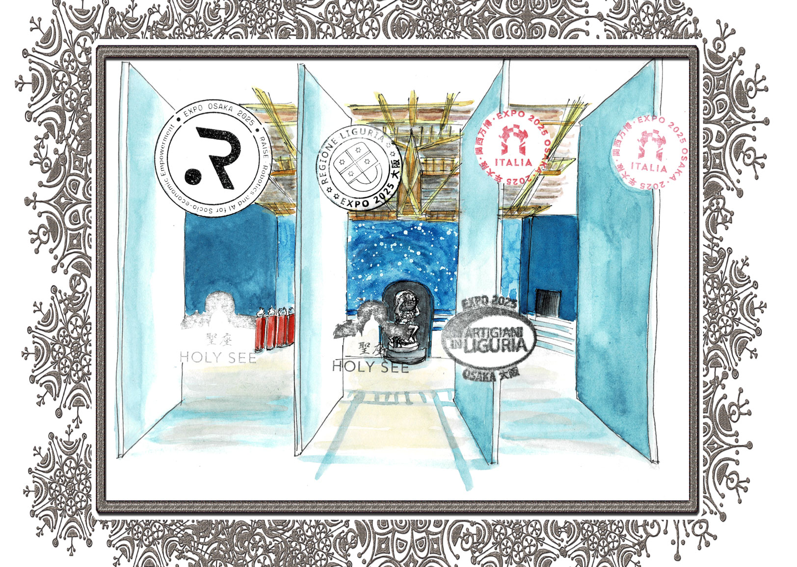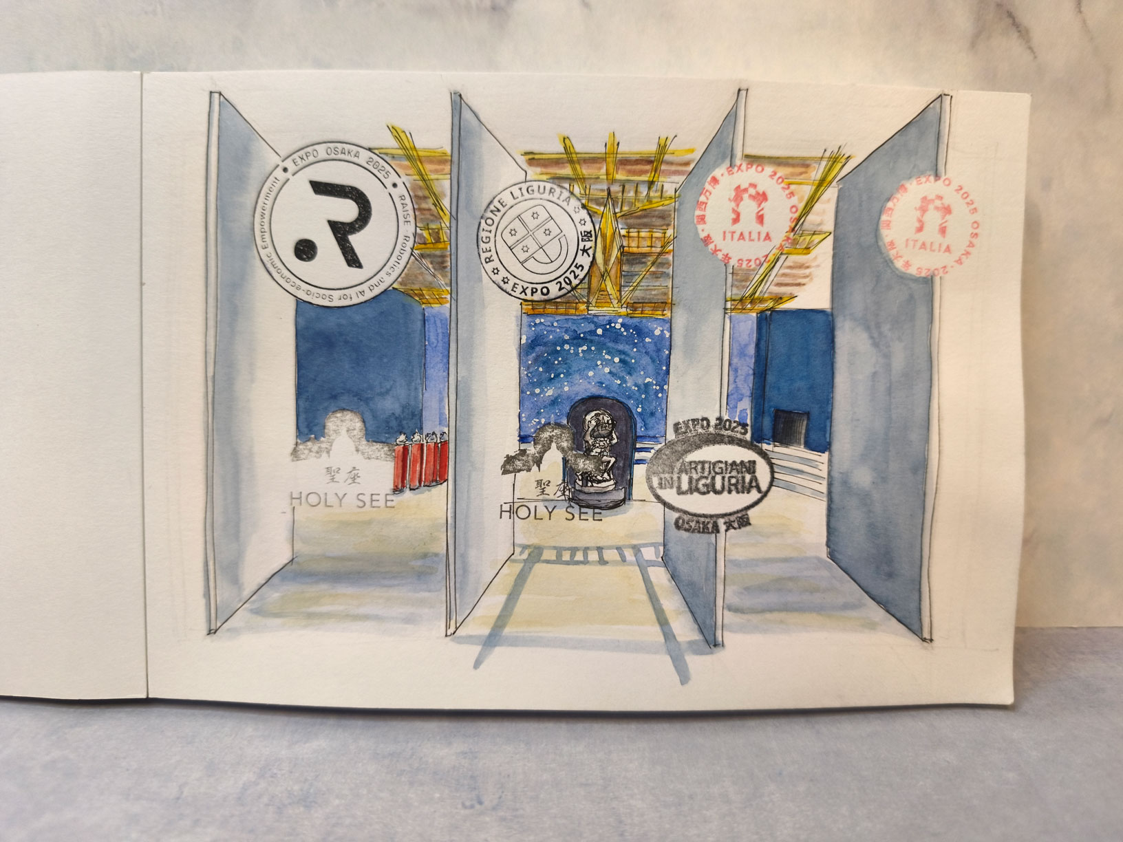 万博イタリア館を透明水彩で描いてみました☆トリックアート風スケッチ