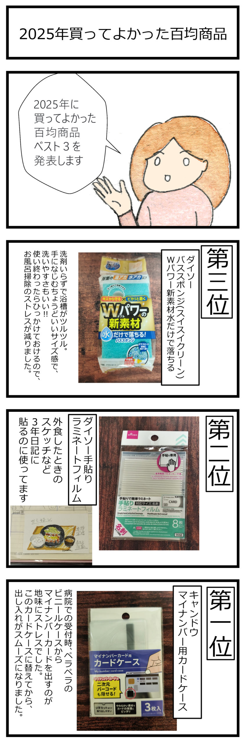2025年買ってよかった百均商品ベスト3(4コマ漫画)
