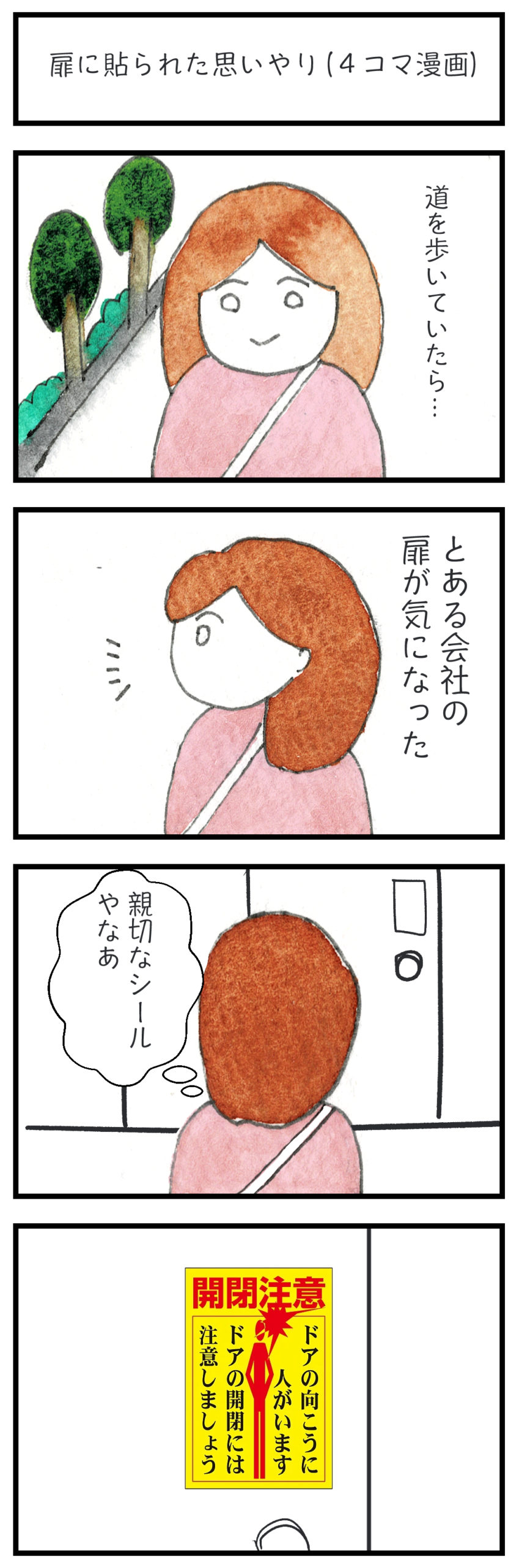 扉に貼られた思いやり(透明水彩4コマ漫画)