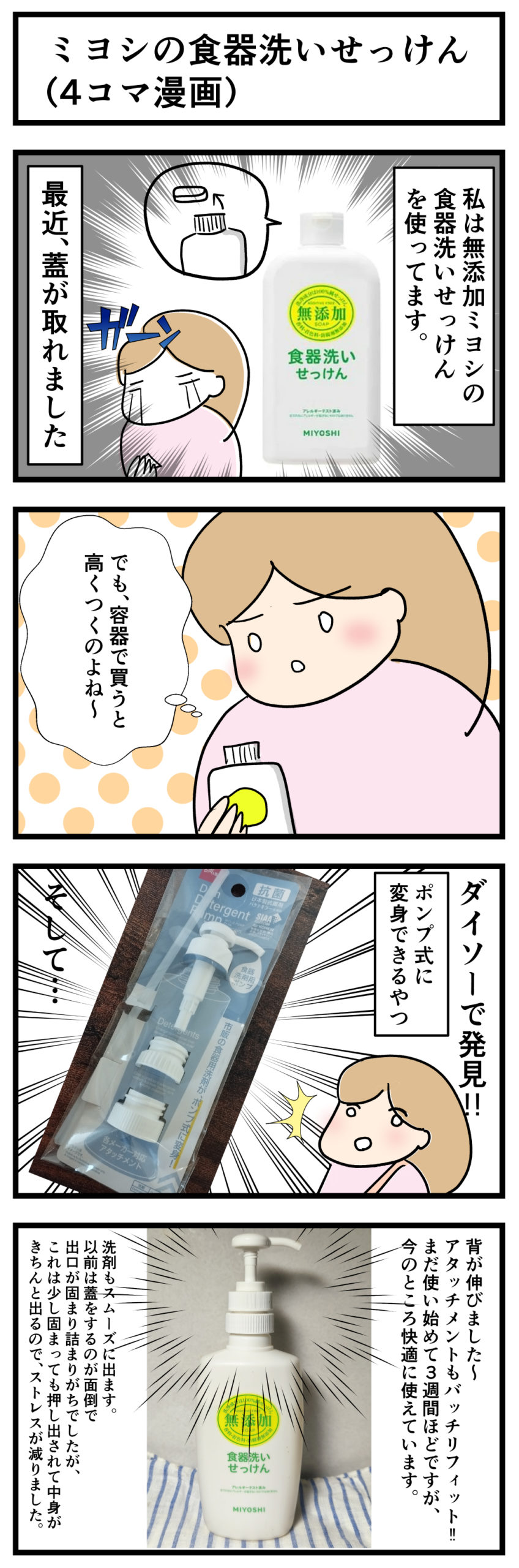 ミヨシの食器洗いせっけん、ポンプ化してみました!(4コマ漫画)