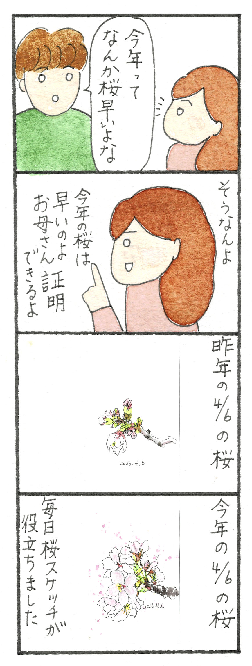 桜の証明(透明水彩4コマ漫画)